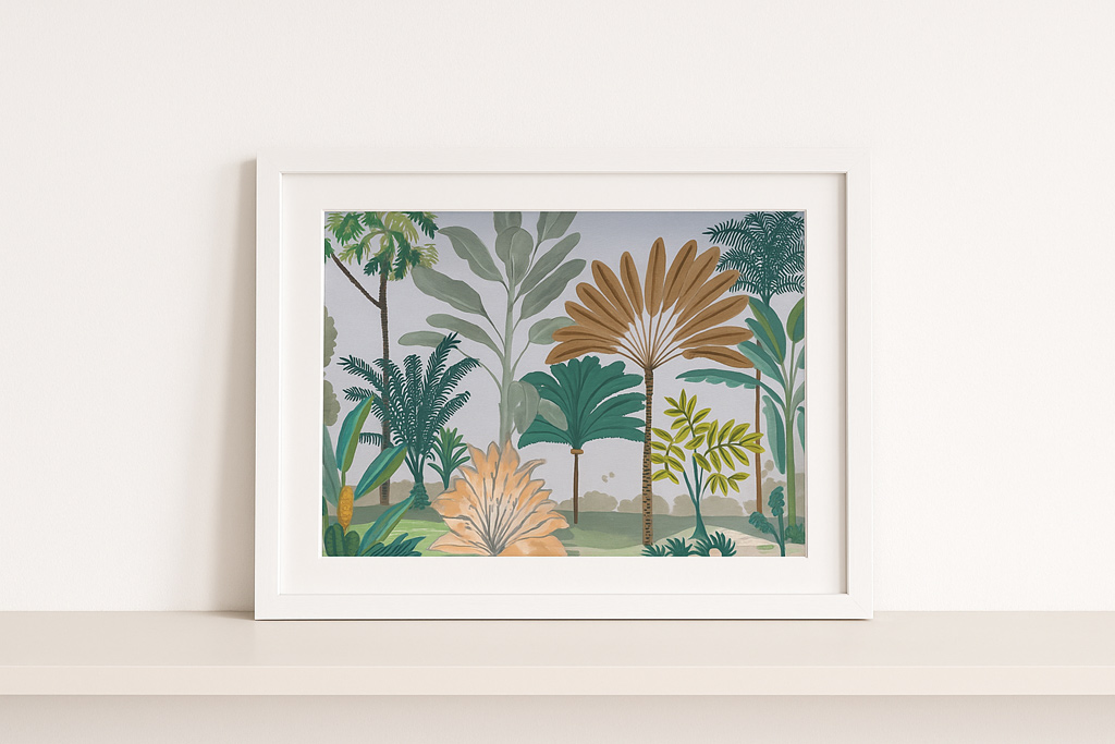 Une illustration végétale aux teintes douces, inspirée des forêts tropicales.