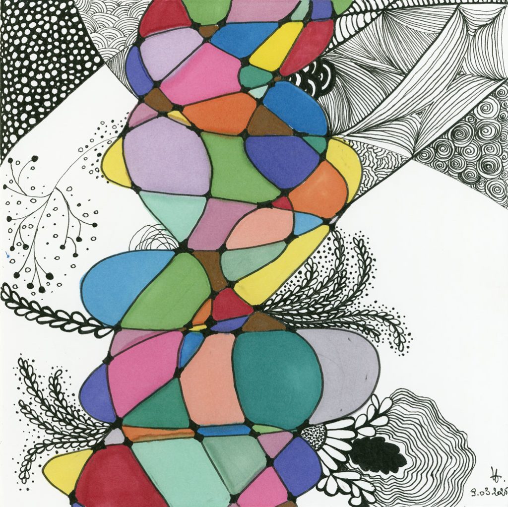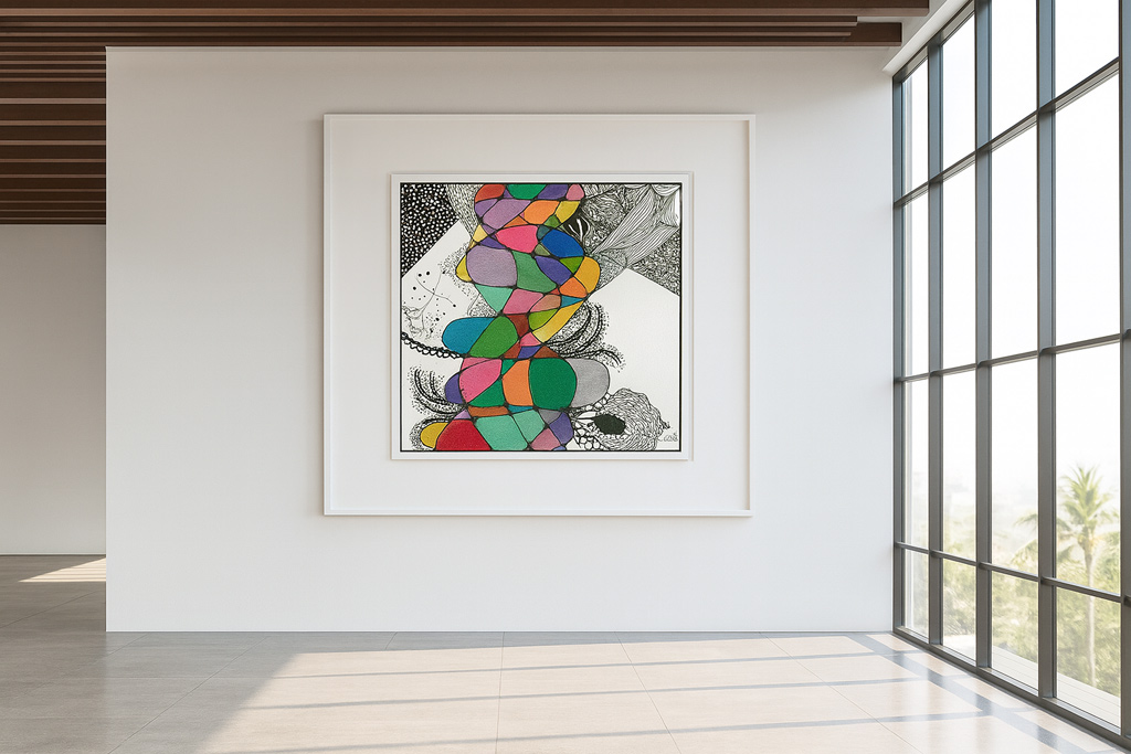 Cette œuvre joue sur les contrastes entre énergie chromatique et délicatesse graphique, comme un souffle de vie qui traverse l’imaginaire.